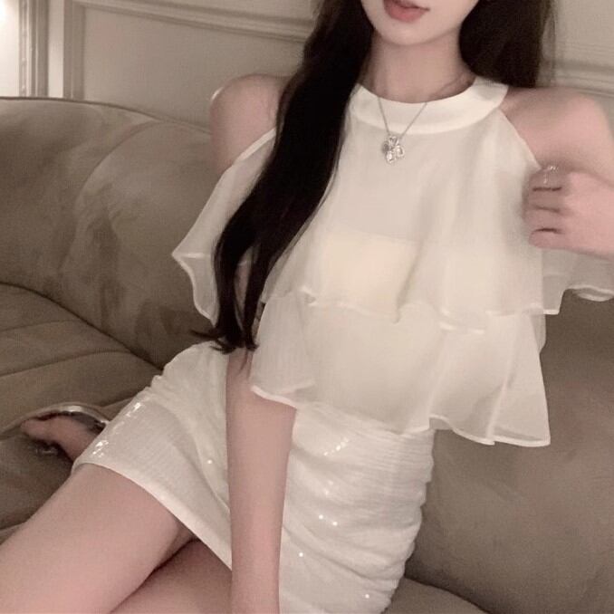 4色/シアースリーブストラップショルダーワンピ ・12626