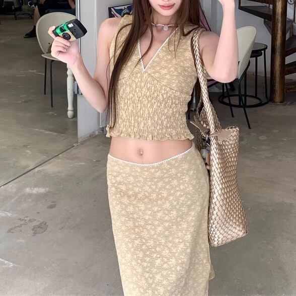 【2点セット】3色/フーディーカシュクールトップス+マーメイドスカート ・12506