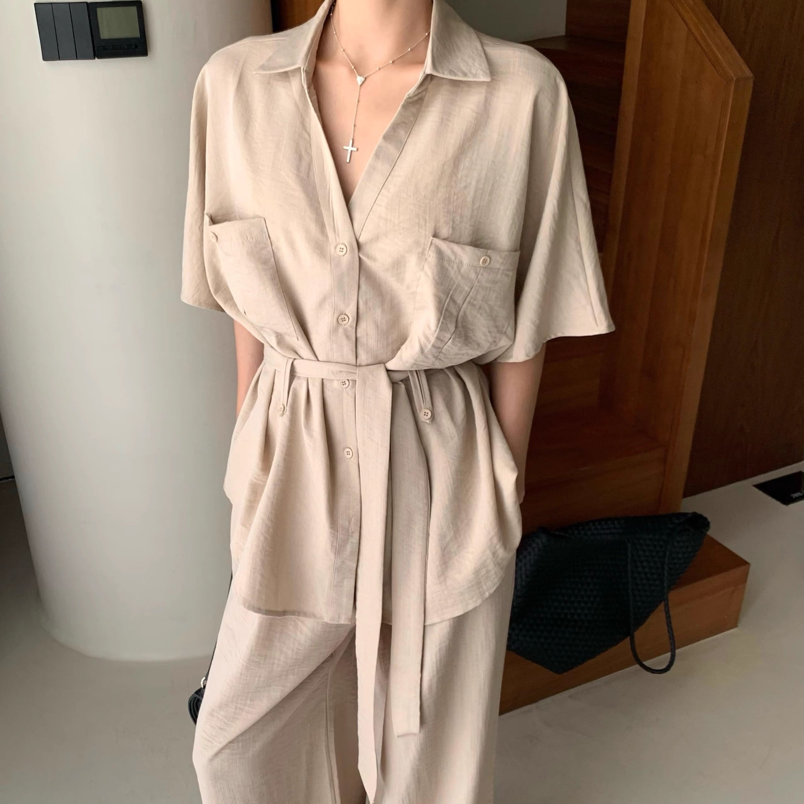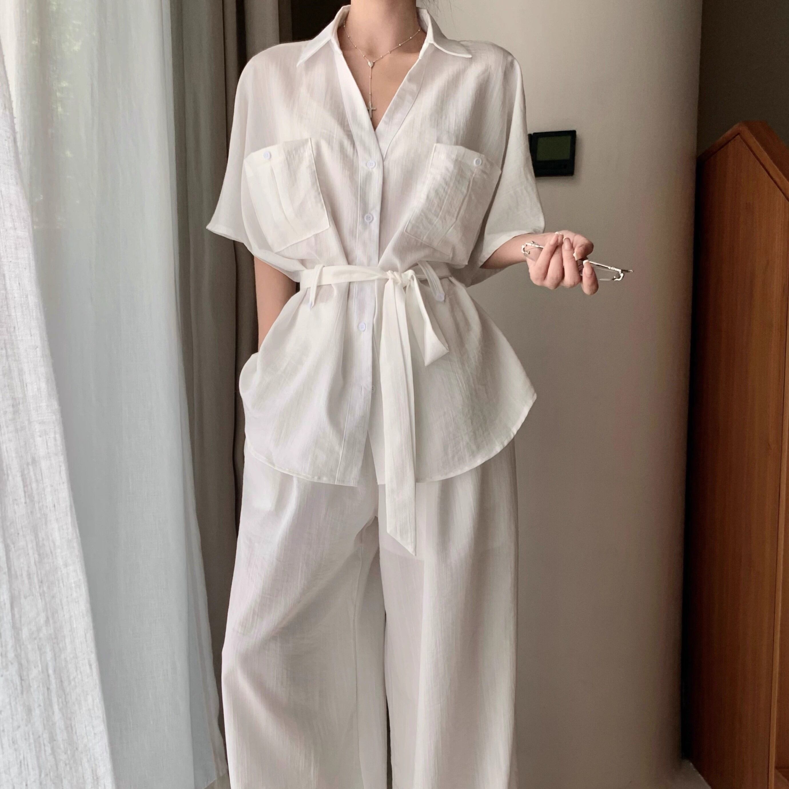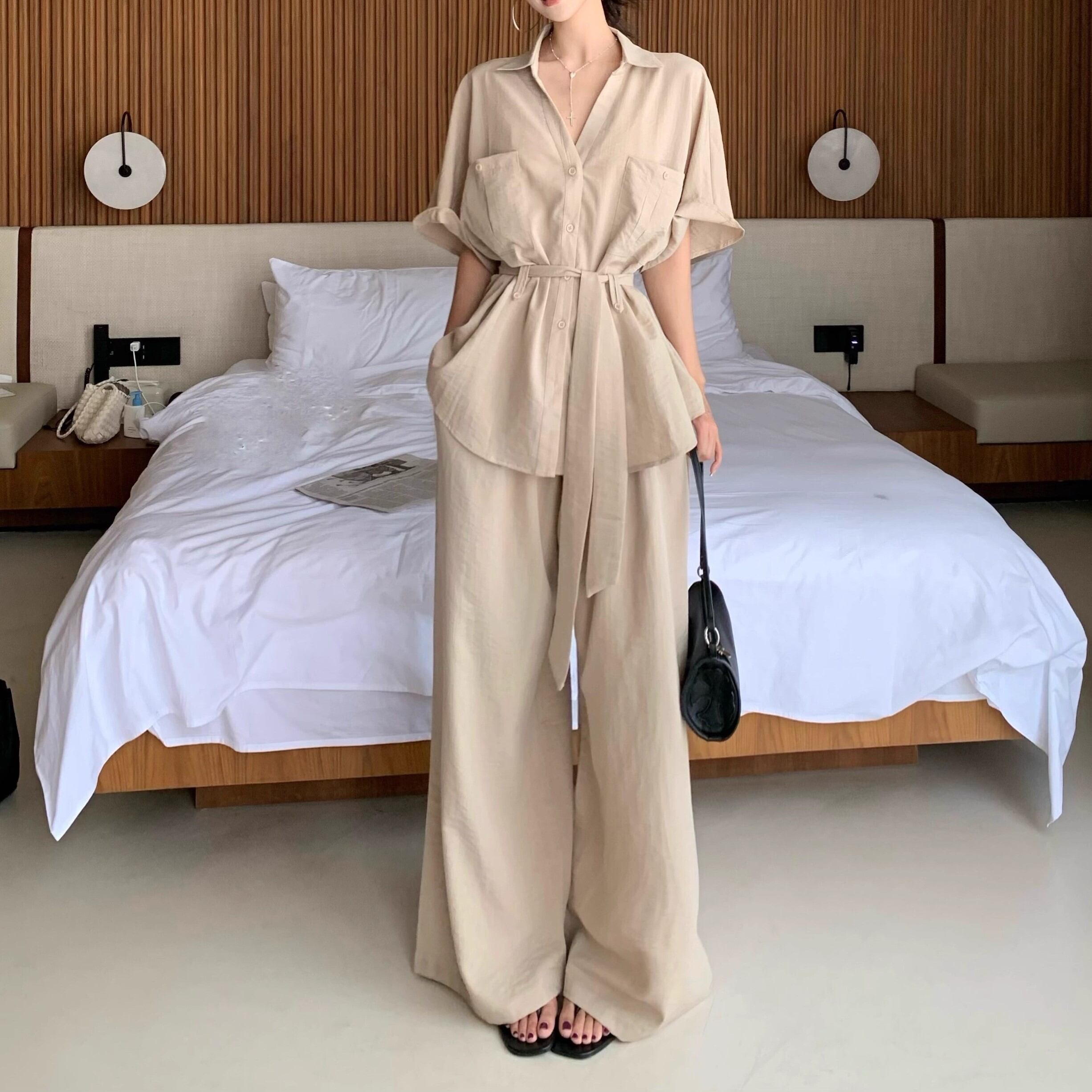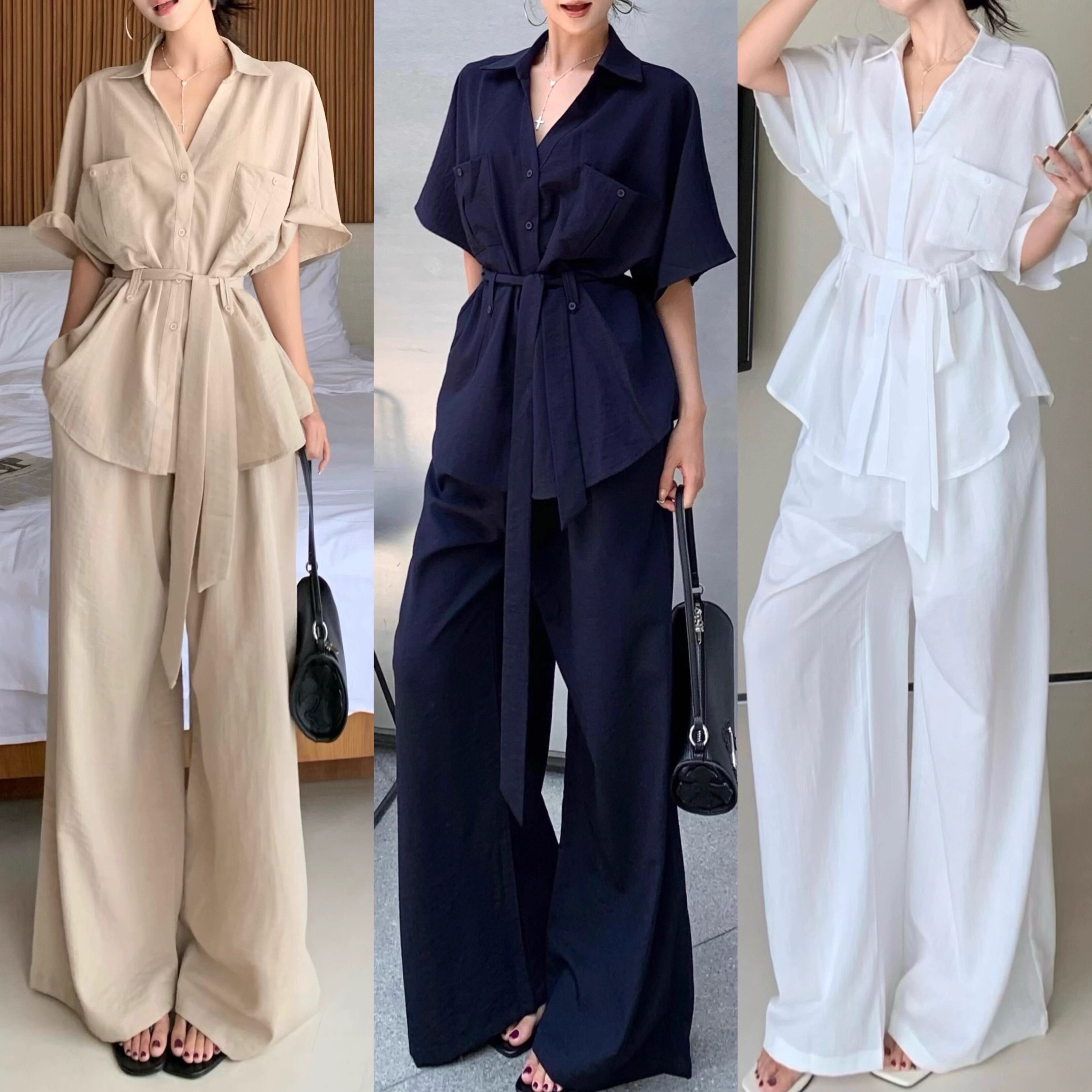 ▽Instagram「新作情報配信中」 フォローお願いいたします。 https://www.instagram.com/rote_roze.official/ ▼カラー ホワイト(画像2枚目) カーキ(画像3枚目) ネイビー(画像4枚目) ▼サイズ [ Sサイズ ] ブラウス:着丈69cm バスト102cm 袖丈17cm パンツ:着丈101cm ウエスト64cm [ Mサイズ ] ブラウス:着丈70cm バスト106cm 袖丈18cm パンツ:着丈102cm ウエスト66cm [ Lサイズ ] ブラウス:着丈71cm バスト110cm 袖丈19cm パンツ:着丈103cm ウエスト68cm [ XLサイズ ] ブラウス:着丈72cm バスト114cm 袖丈20cm パンツ:着丈104cm ウエスト70cm ※1-3cm程度の誤差がある場合がございます。予めご了承ください。 ▼シーズン 春,夏 ▼同じカテゴリの商品はこちら https://www.roteroze.com/categories/4991976 ▽お支払い方法 ・クレジットカード決済 ・キャリア決済 (docomo/au/Softbank/Y!mobile) ・後払い決済 (商品お届け後コンビニ払いなど) ▽注意点 ※こちらの商品は決済から10日-3週間前後でのお届けとなります。 ※配送日時指定等に関しては、ご指定できないことご了承くださいませ。 ※できる限り早くお届けできるように手配させて頂きます。 ※検品はしておりますが、もし届いた商品に不備がありましたら、誠実に対応させていただきます。 商品ID:RR011662