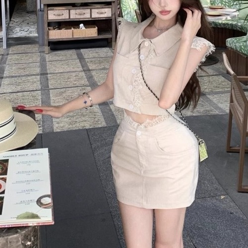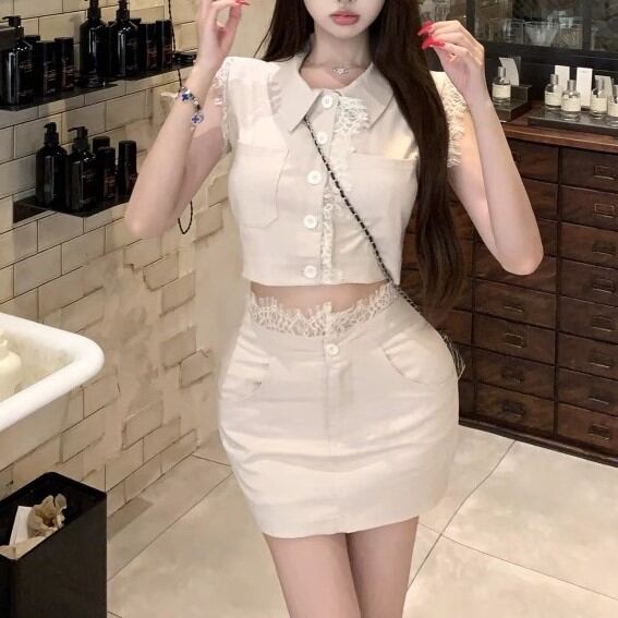【3点セット】レースブラレット+オフショルトップス+レースヘムスカート ・12766