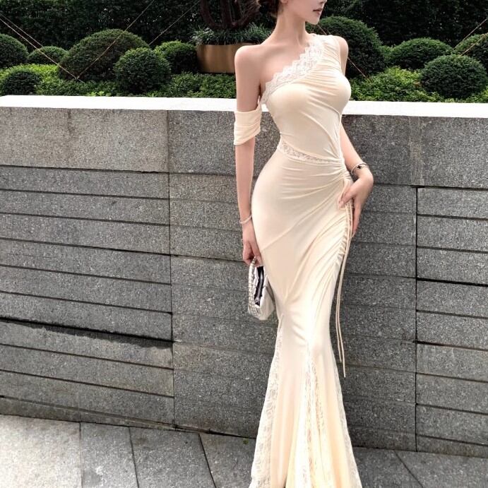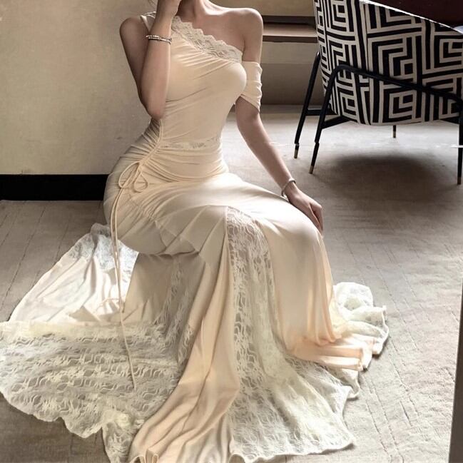 レースデザインワンショルワンピ ・12621