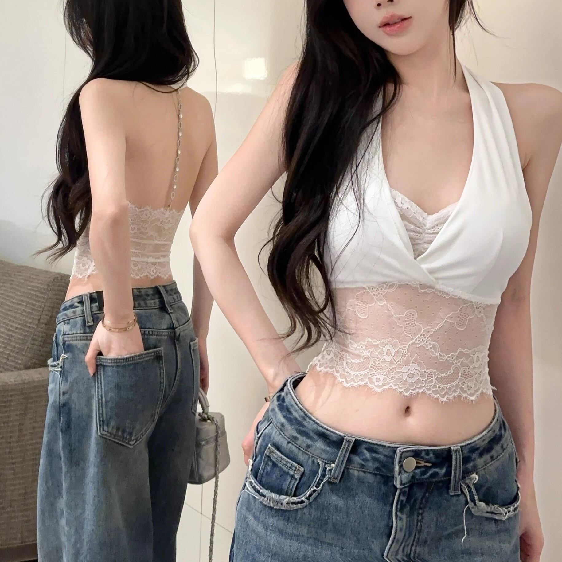 バックレースアップフリルキャミ ・13161