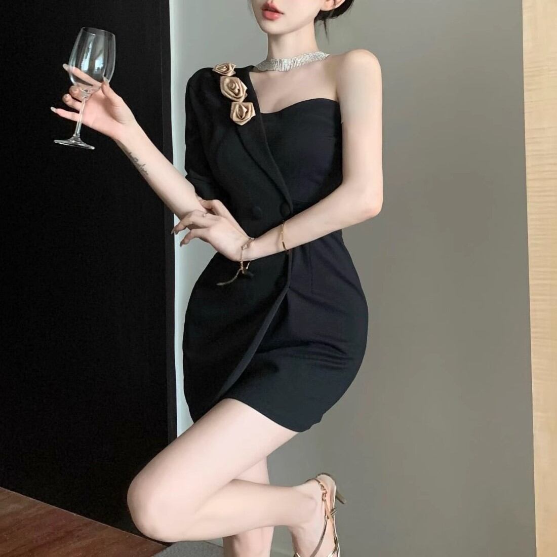 レースデザインワンショルワンピ ・12621