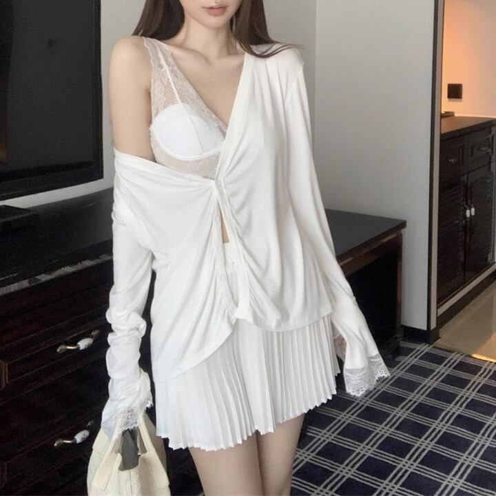 【3点セット】レースブラレット+オフショルトップス+レースヘムスカート ・12766