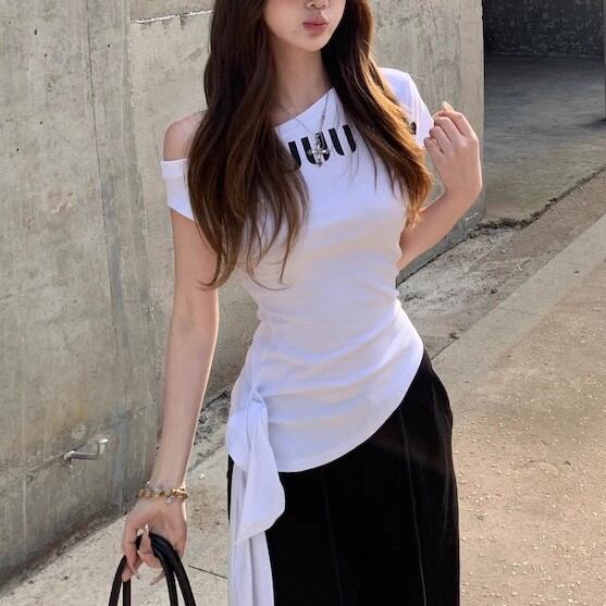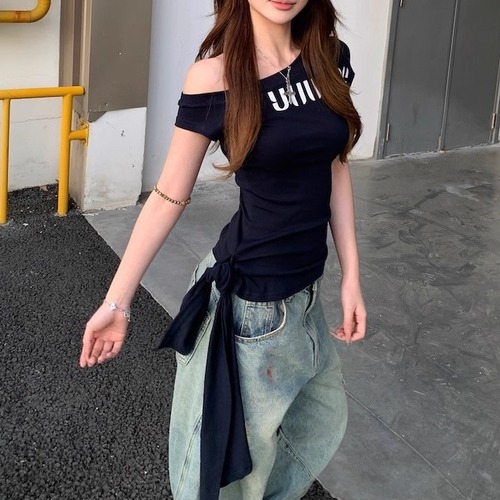 5色/オープンショルダードレープネックトップス ・12357
