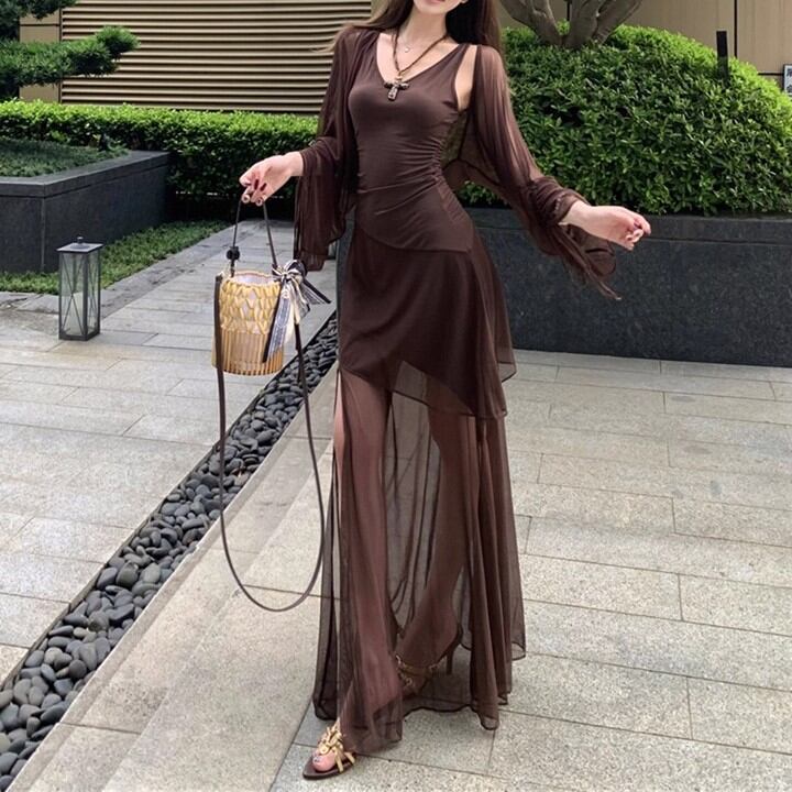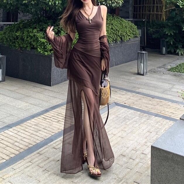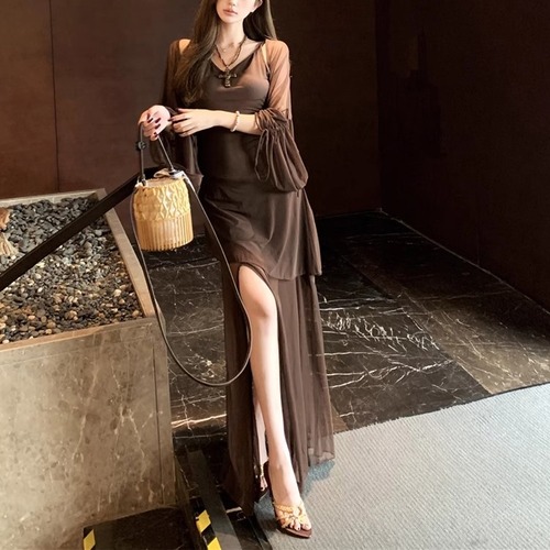 【2点セット】3色/フーディーカシュクールトップス+マーメイドスカート ・12506