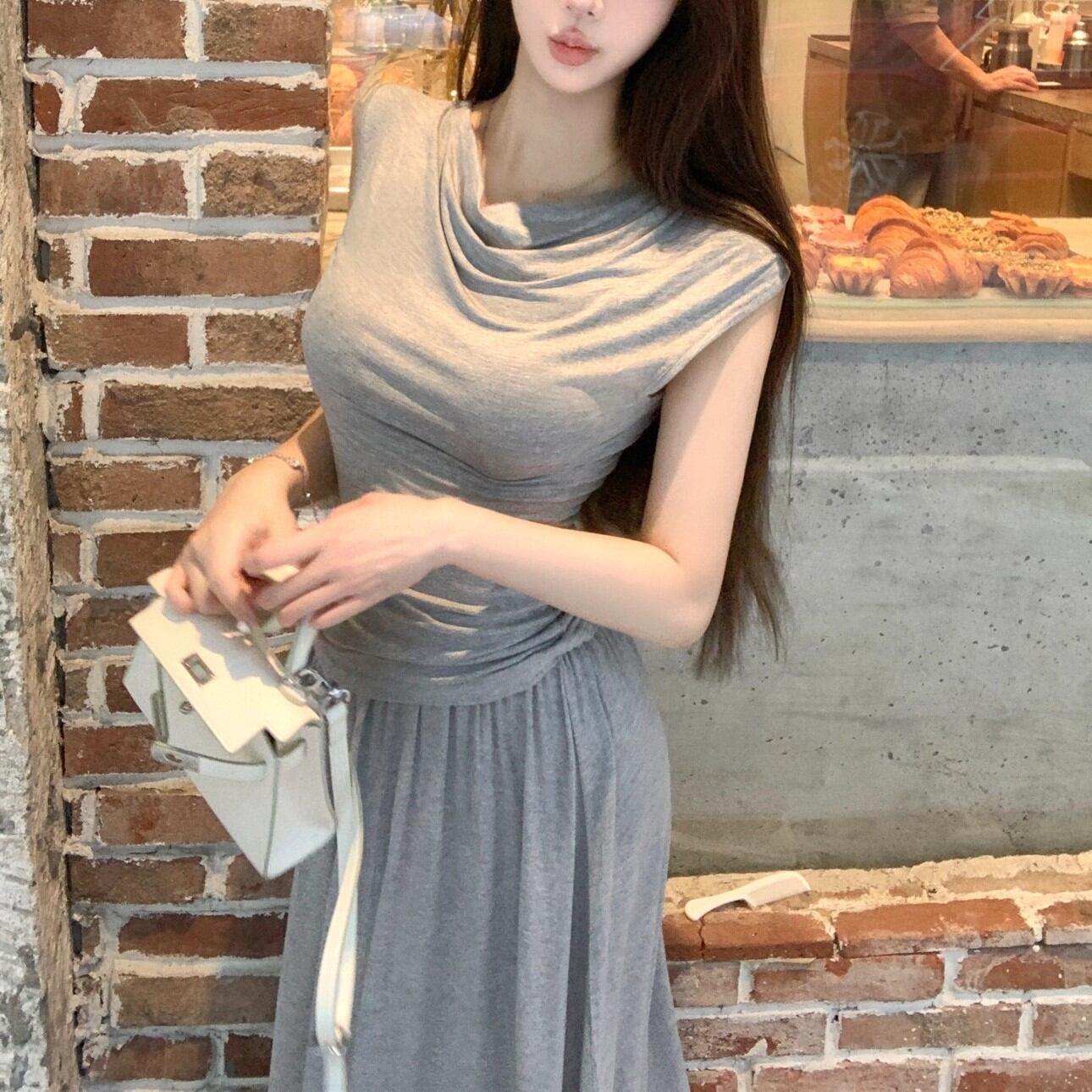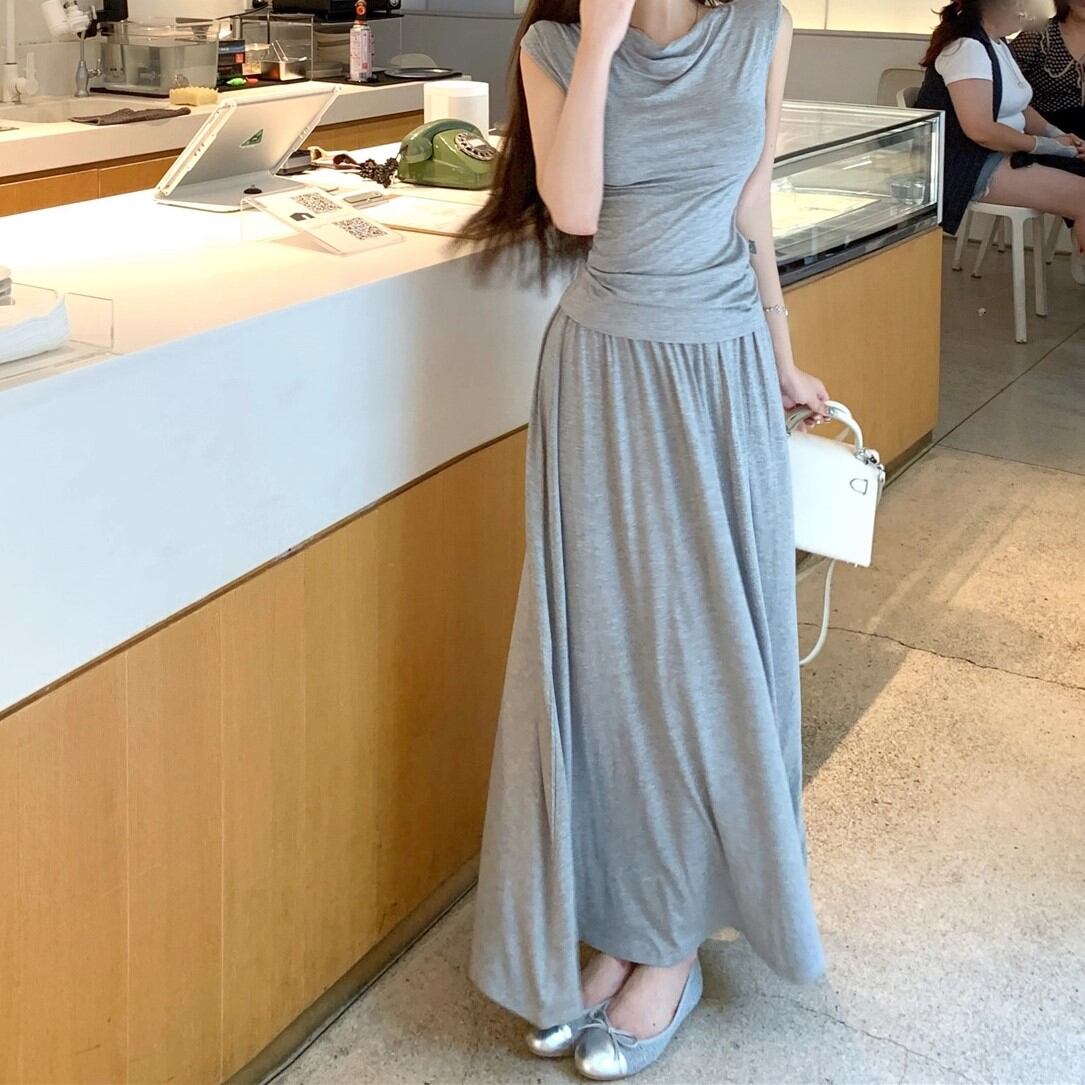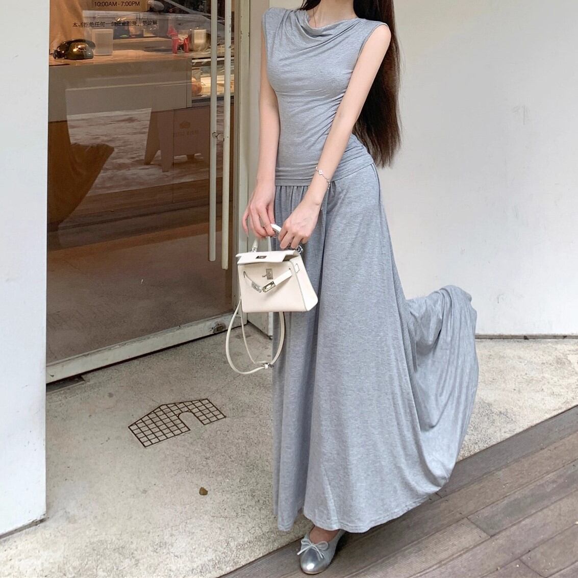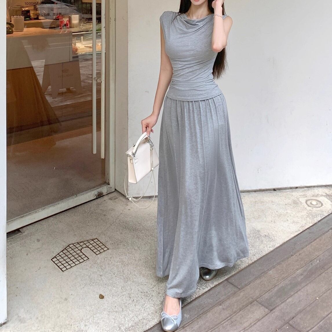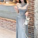 【2点セット】3色/フーディーカシュクールトップス+マーメイドスカート ・12506