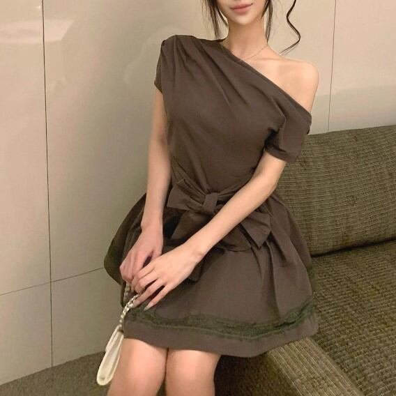 4色/シアースリーブストラップショルダーワンピ ・12626