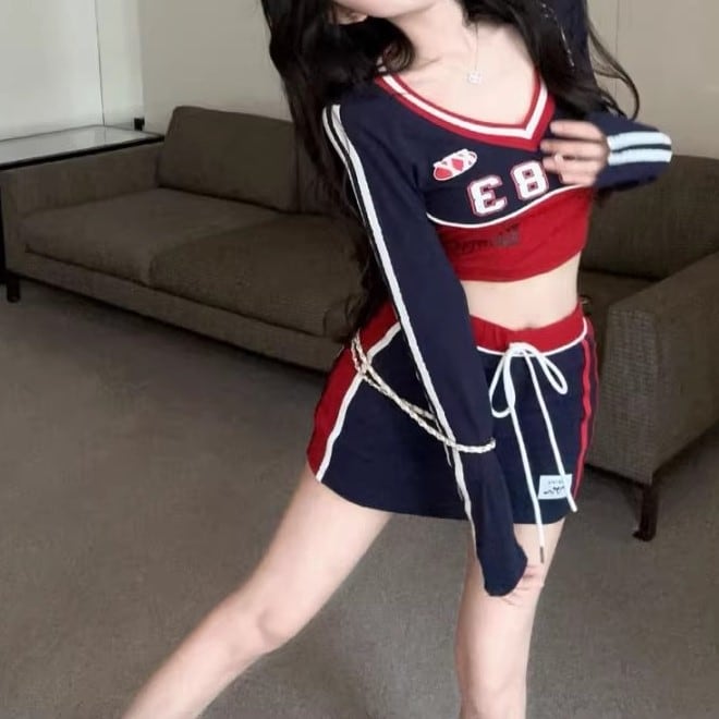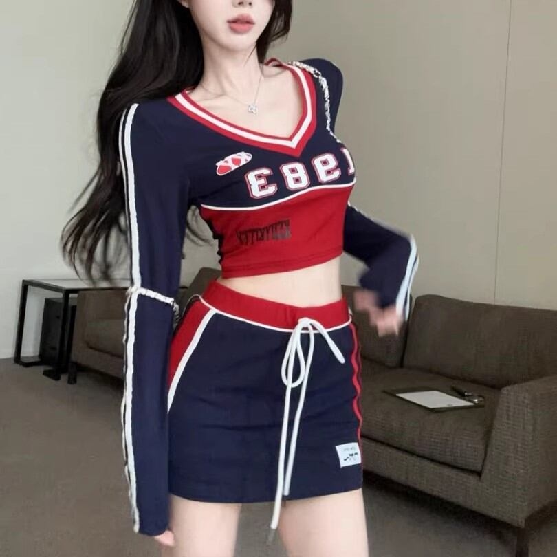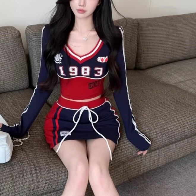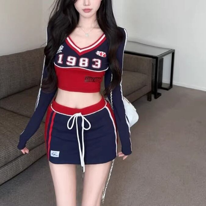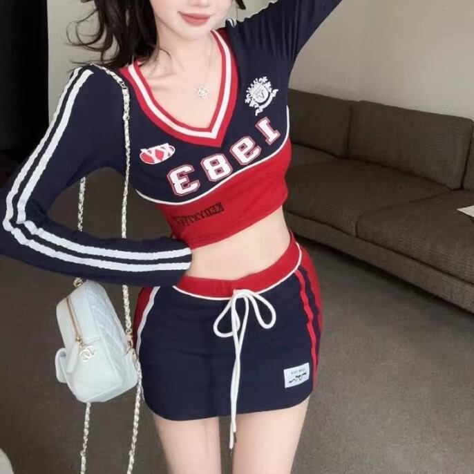 【2点セット】3色/フーディーカシュクールトップス+マーメイドスカート ・12506