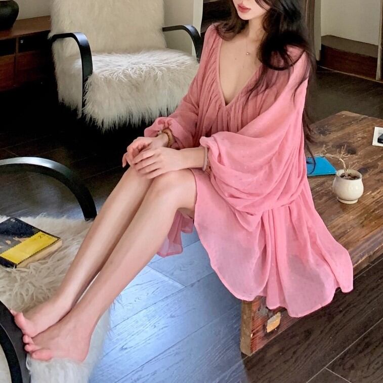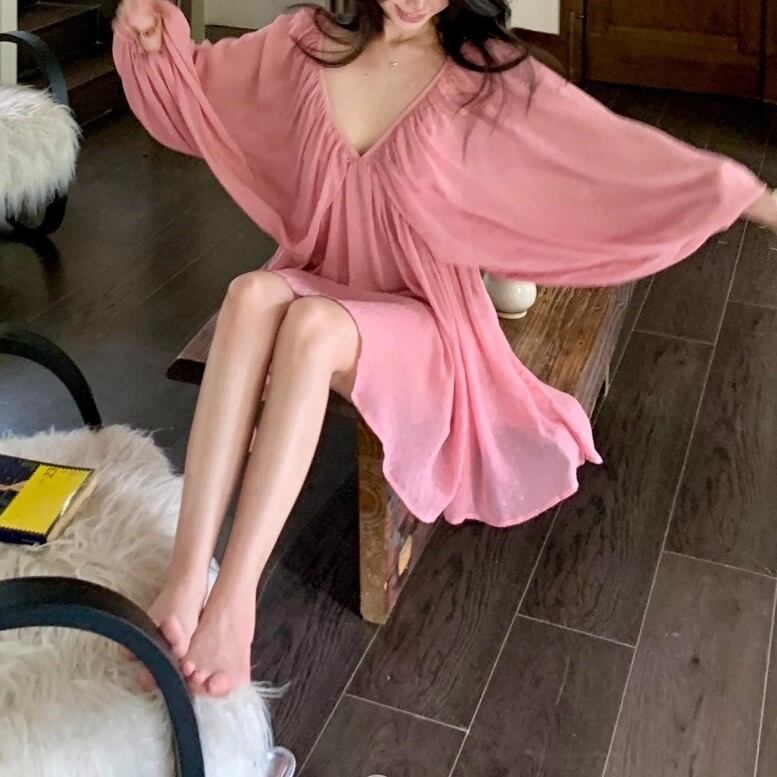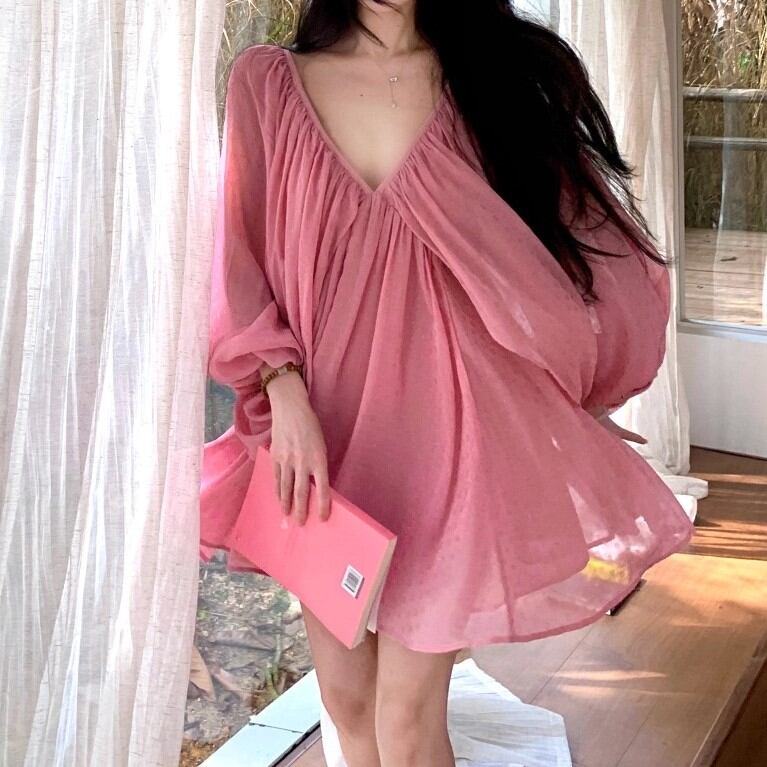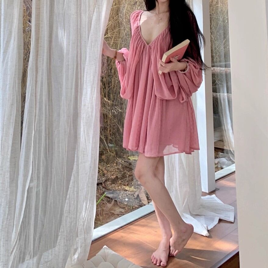 4色/シアースリーブストラップショルダーワンピ ・12626