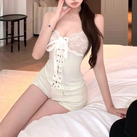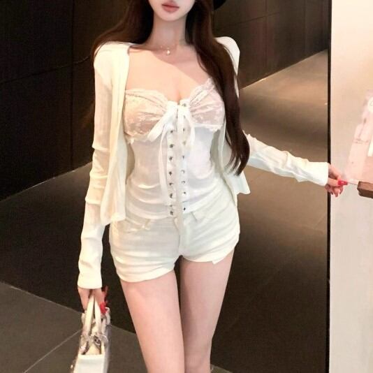 【3点セット】レースブラレット+オフショルトップス+レースヘムスカート ・12766