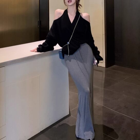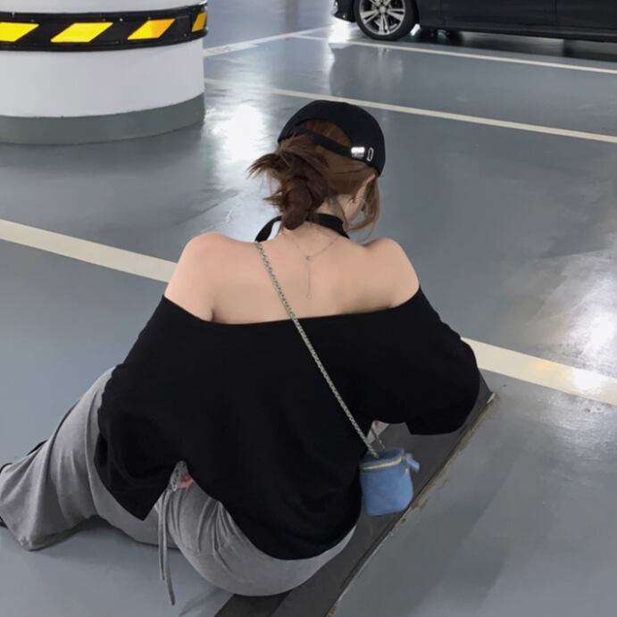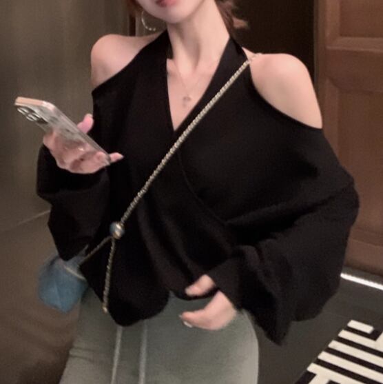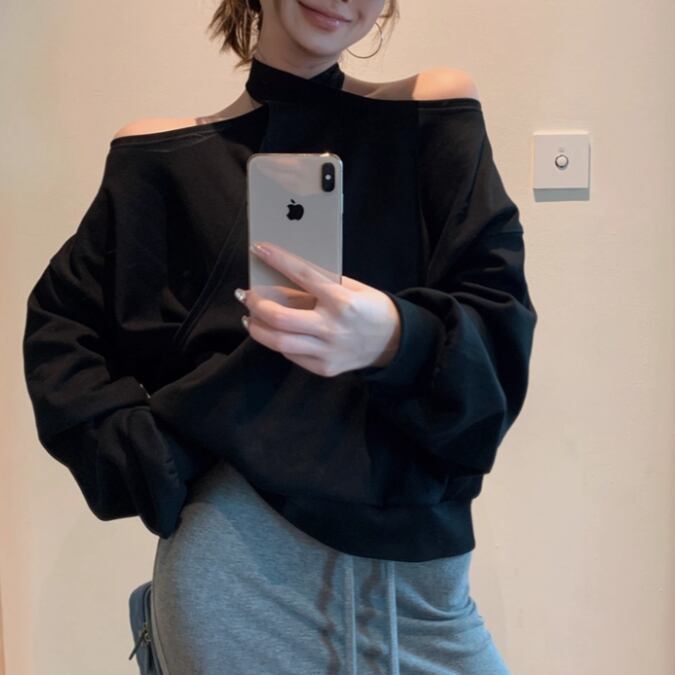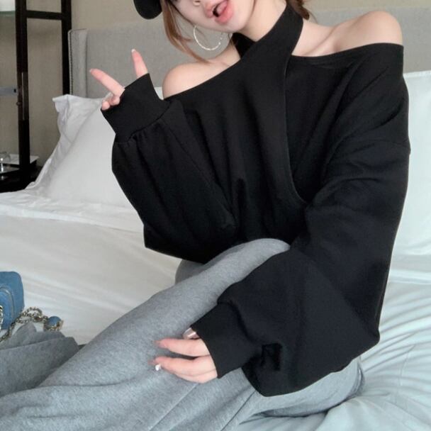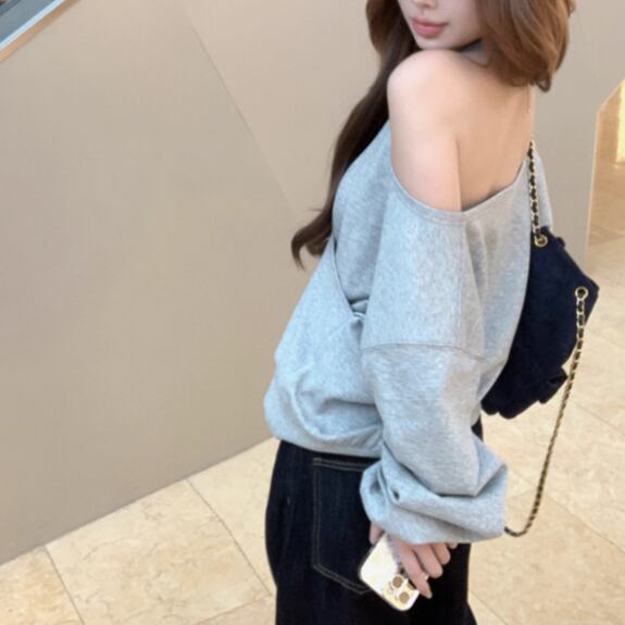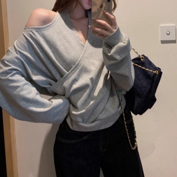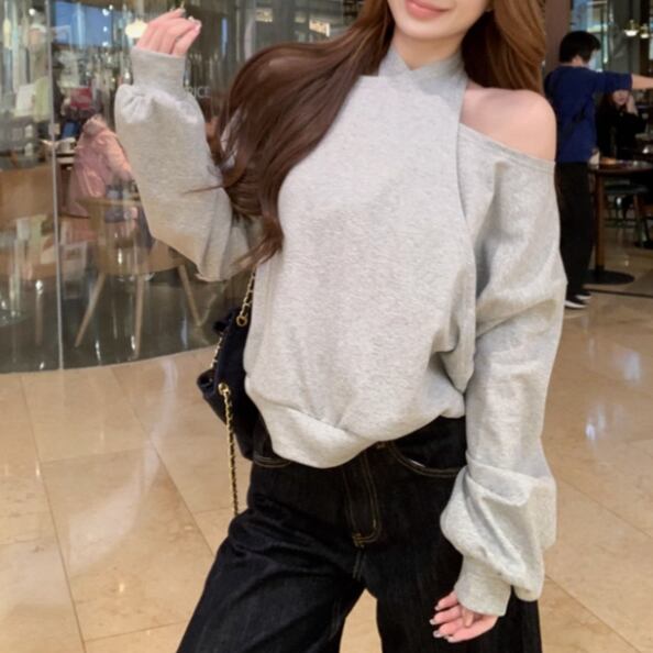 5色/オープンショルダードレープネックトップス ・12357