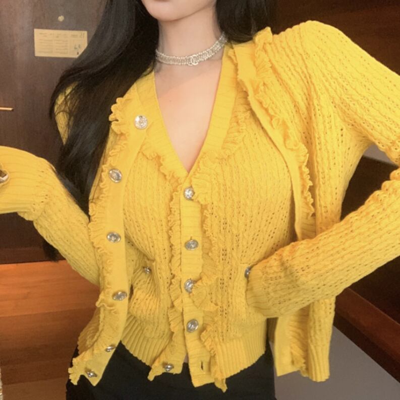 ▽Instagram「新作情報配信中」 フォローお願いいたします。 https://www.instagram.com/rote_roze.official/ ▼カラー イエロー(画像2枚目) ホワイト(画像3枚目) ▼サイズ [ フリーサイズ ] トップス:着丈52cm バスト72cm 肩幅26cm カーデ:着丈54cm バスト82cm 肩幅36cm 袖丈63cm ※1-3cm程度の誤差がある場合がございます。予めご了承ください。 ▼シーズン 春,秋 ▼同じカテゴリの商品はこちら https://www.roteroze.com/categories/4991976 ▽お支払い方法 ・クレジットカード決済 ・キャリア決済 (docomo/au/Softbank/Y!mobile) ・後払い決済 (商品お届け後コンビニ払いなど) ▽注意点 ※こちらの商品は決済から10日-3週間前後でのお届けとなります。 ※配送日時指定等に関しては、ご指定できないことご了承くださいませ。 ※できる限り早くお届けできるように手配させて頂きます。 ※検品はしておりますが、もし届いた商品に不備がありましたら、誠実に対応させていただきます。 商品ID:RR012075