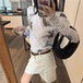 3色/ファーカラーレースアップコンビトップス ・12904