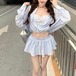 【3点セット】レースブラレット+オフショルトップス+レースヘムスカート ・12766