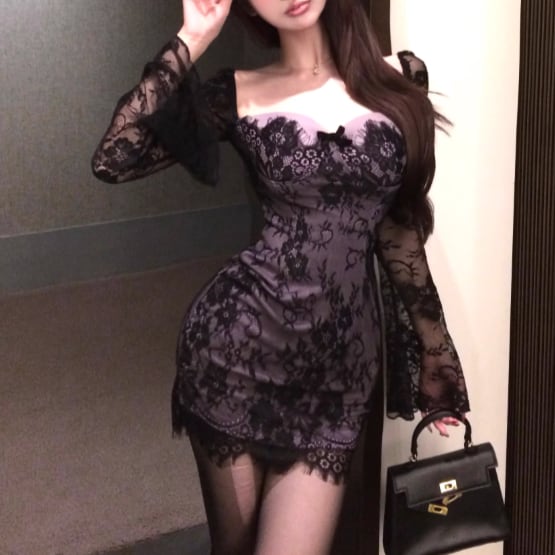レースデザインワンショルワンピ ・12621