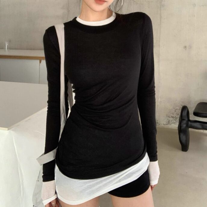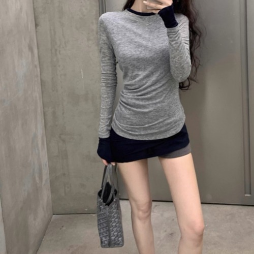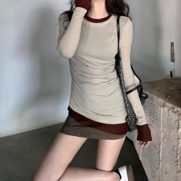 3色/ファーカラーレースアップコンビトップス ・12904
