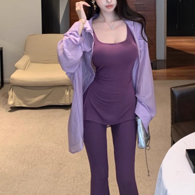 ▽Instagram「新作情報配信中」 フォローお願いいたします。 https://www.instagram.com/rote_roze.official/ ▼カラー パープル(画像2枚目) ネイビー(画像3枚目) ▼サイズ [ Sサイズ ] ブラウス:着丈79cm バスト120cm 袖丈69cm トップス:着丈66cm バスト72cm パンツ:着丈102cm ウエスト60cm [ Mサイズ ] ブラウス:着丈79cm バスト120cm 袖丈69cm トップス:着丈67cm バスト76cm パンツ:着丈103cm ウエスト62cm ※1-3cm程度の誤差がある場合がございます。予めご了承ください。 ▼シーズン 春,秋 ▼同じカテゴリの商品はこちら https://www.roteroze.com/categories/4991976 ▽お支払い方法 ・クレジットカード決済 ・キャリア決済 (docomo/au/Softbank/Y!mobile) ・後払い決済 (商品お届け後コンビニ払いなど) ▽注意点 ※こちらの商品は決済から10日-3週間前後でのお届けとなります。 ※配送日時指定等に関しては、ご指定できないことご了承くださいませ。 ※できる限り早くお届けできるように手配させて頂きます。 ※検品はしておりますが、もし届いた商品に不備がありましたら、誠実に対応させていただきます。 商品ID:RR012195