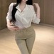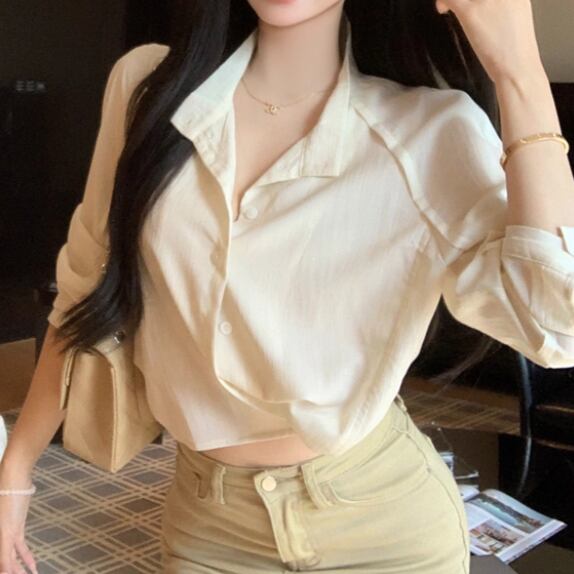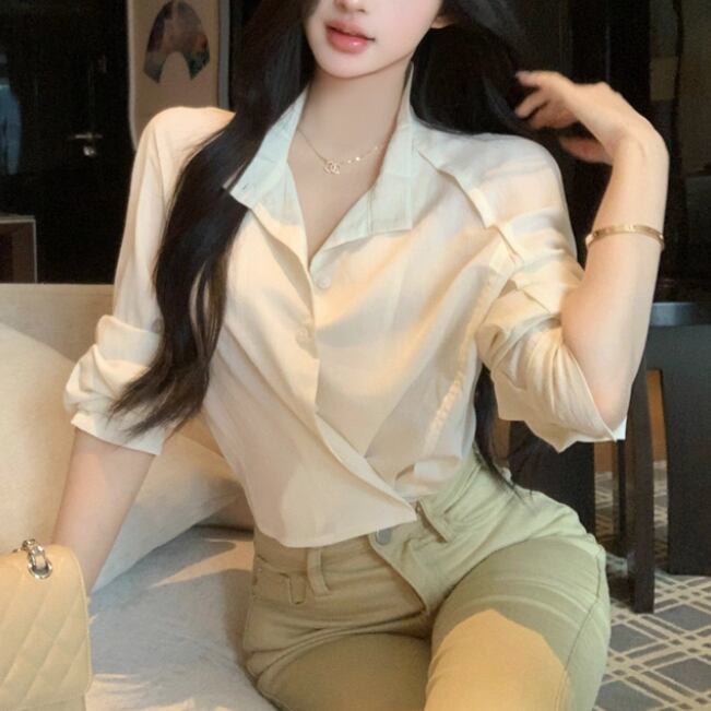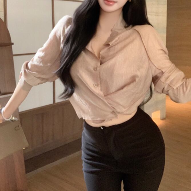 ウエストWボタンアシメショルダーブラウス ・13137