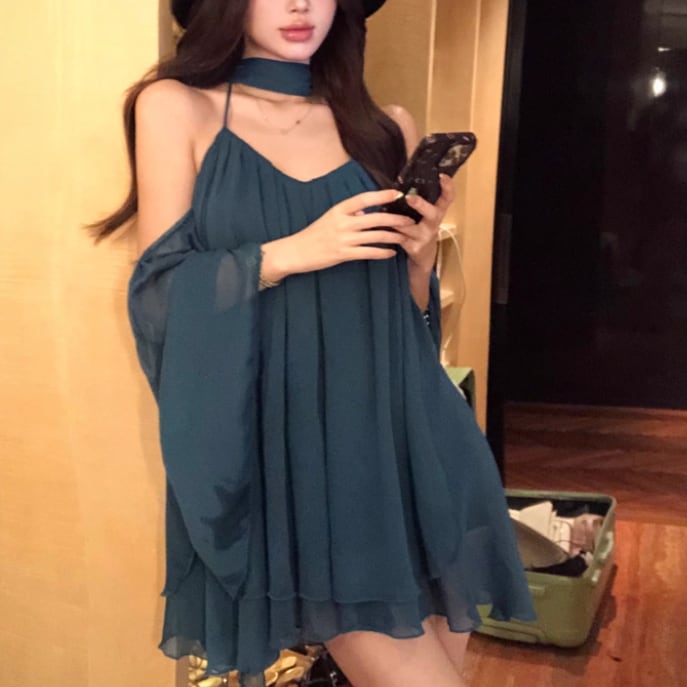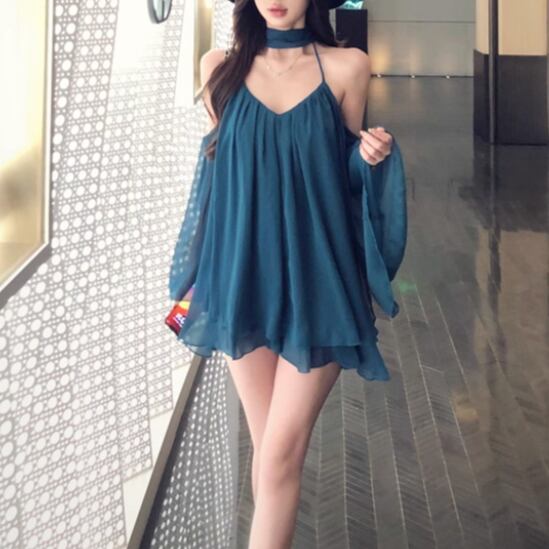 4色/シアースリーブストラップショルダーワンピ ・12626