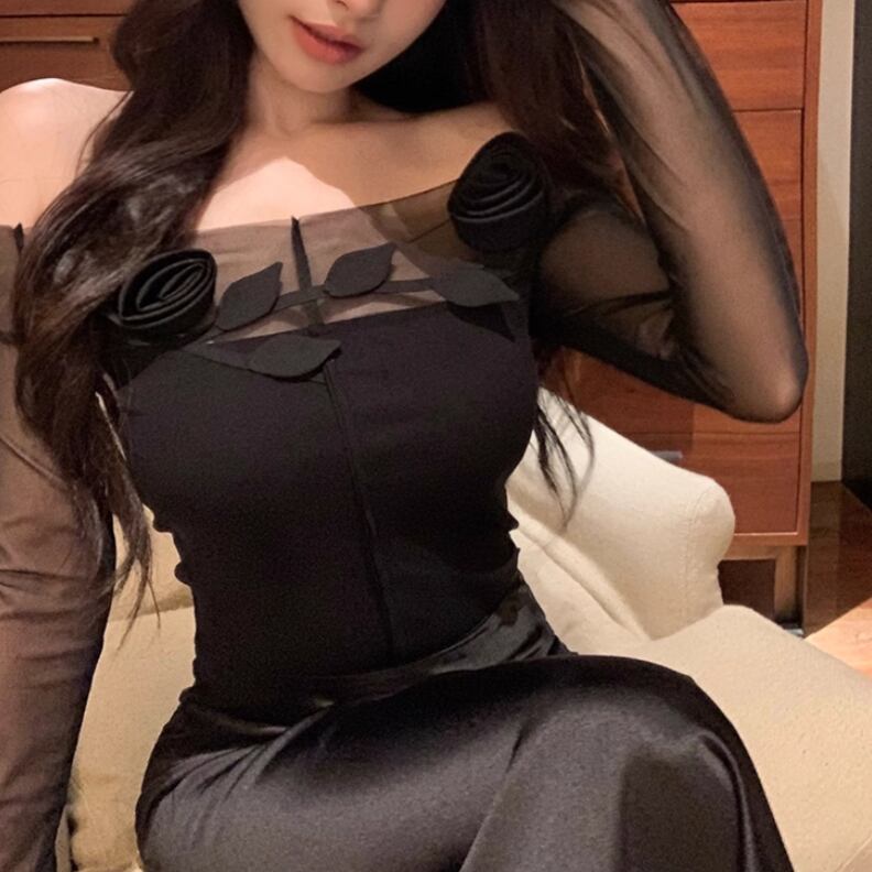 5色/オープンショルダードレープネックトップス ・12357