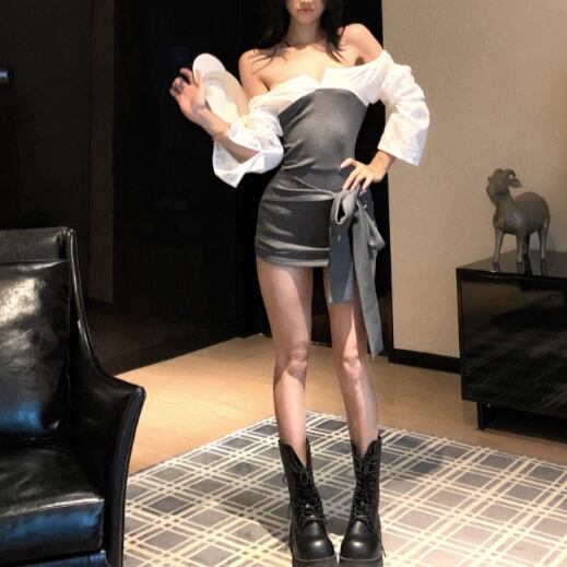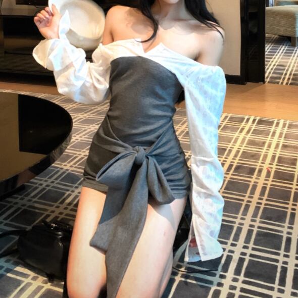 4色/シアースリーブストラップショルダーワンピ ・12626