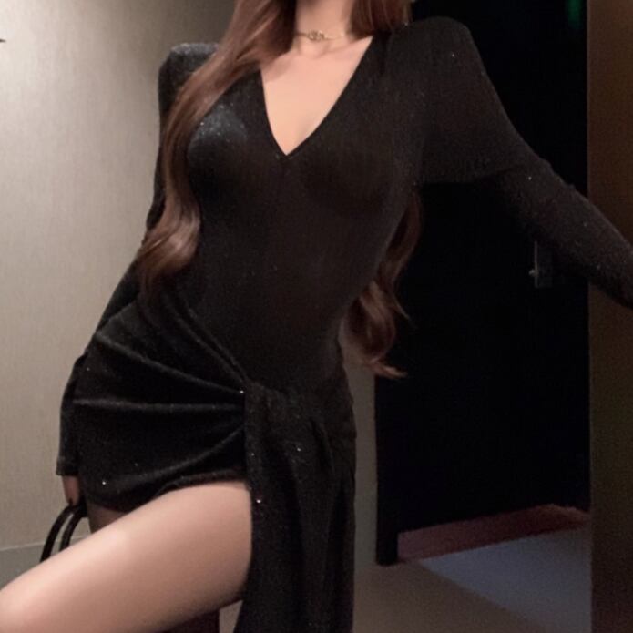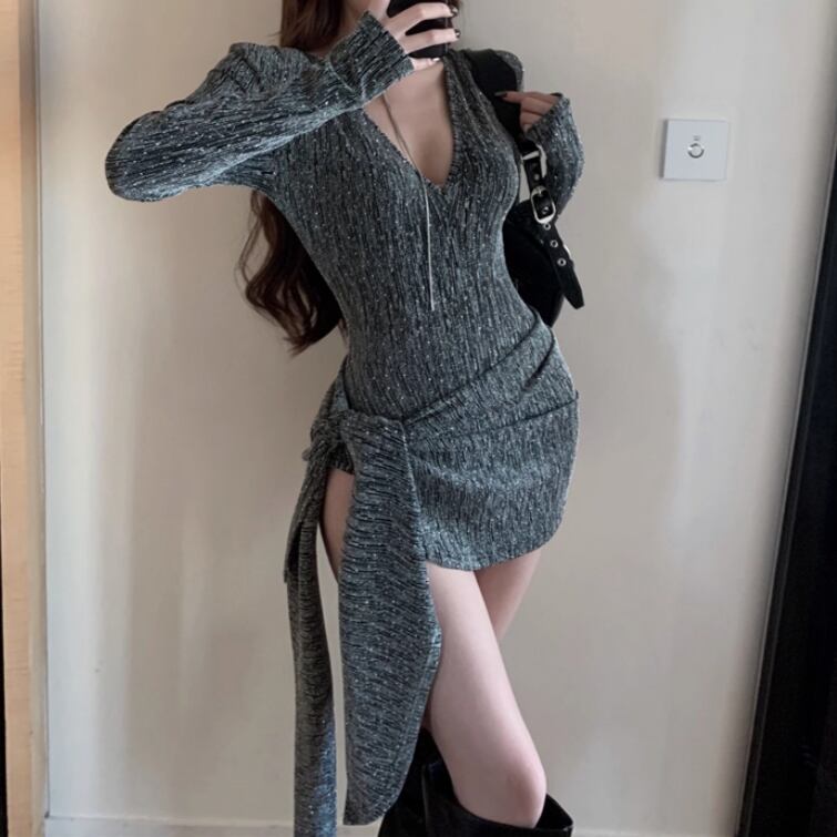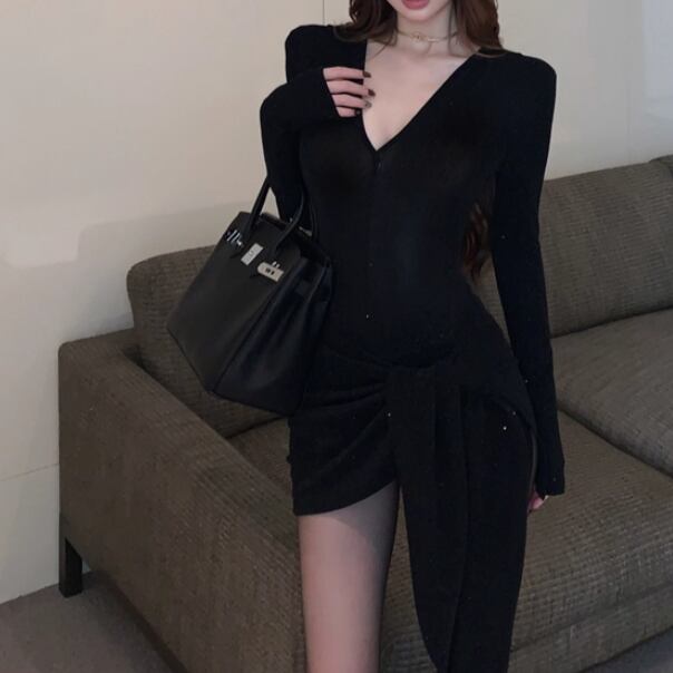 【2点セット】3色/フーディーカシュクールトップス+マーメイドスカート ・12506