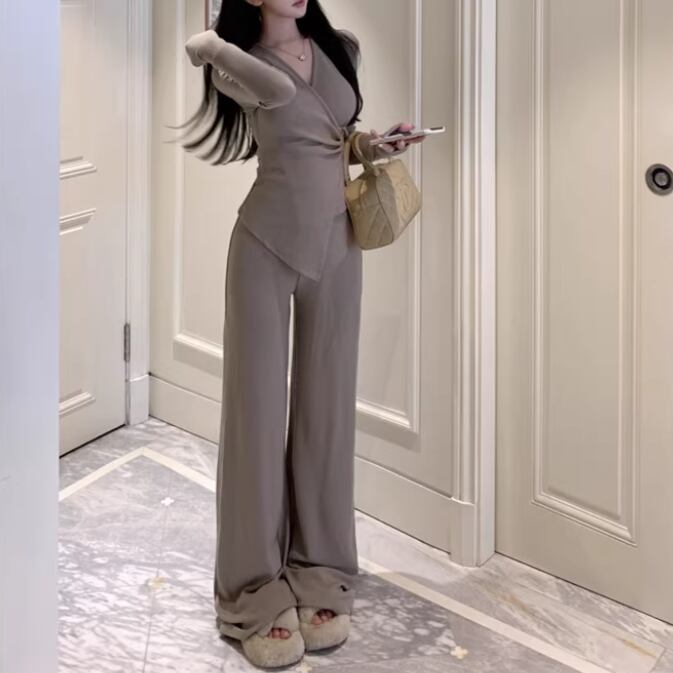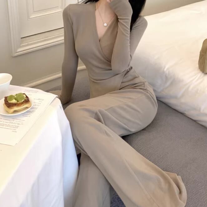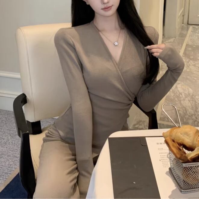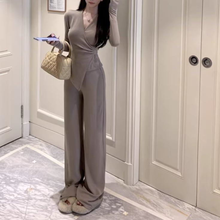 【2点セット】3色/フーディーカシュクールトップス+マーメイドスカート ・12506