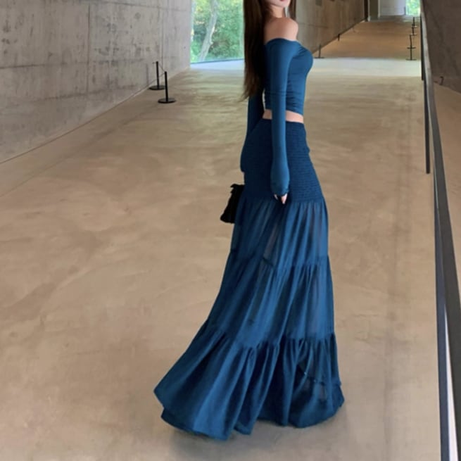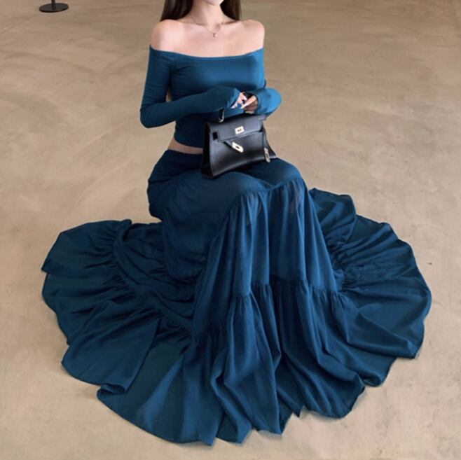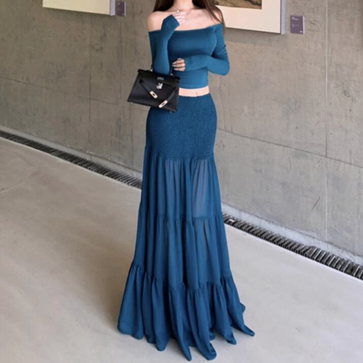 【2点セット】3色/フーディーカシュクールトップス+マーメイドスカート ・12506