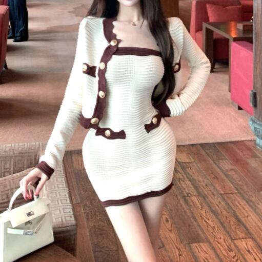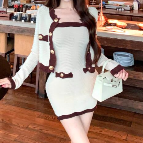 【2点セット】3色/フーディーカシュクールトップス+マーメイドスカート ・12506