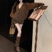 【2点セット】3色/フーディーカシュクールトップス+マーメイドスカート ・12506