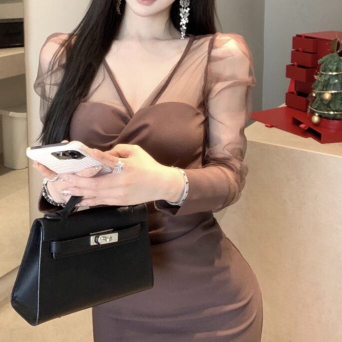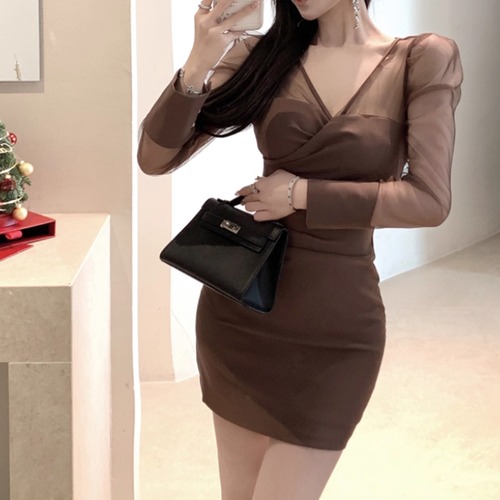 4色/シアースリーブストラップショルダーワンピ ・12626