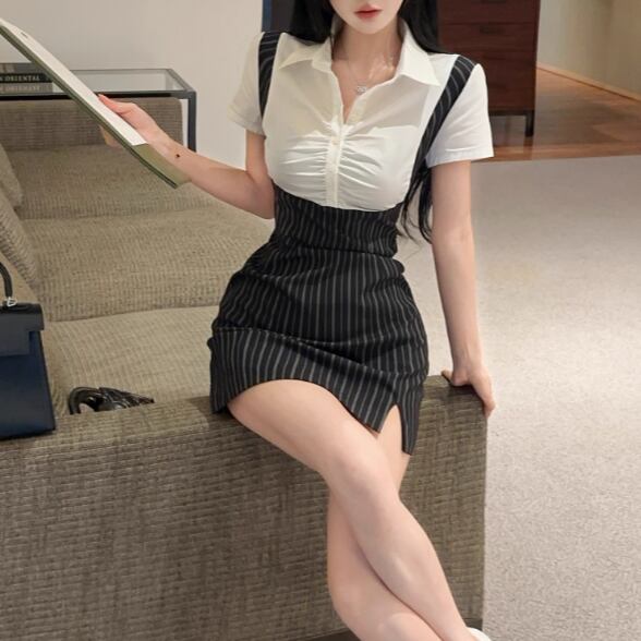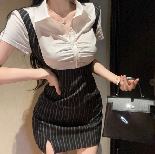 2色/バックシャンウエストマークワンピ ・10937