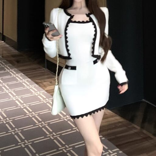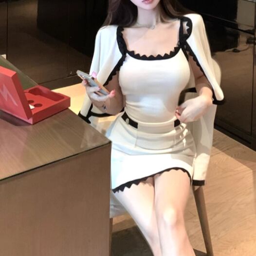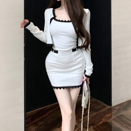 【2点セット】3色/フーディーカシュクールトップス+マーメイドスカート ・12506