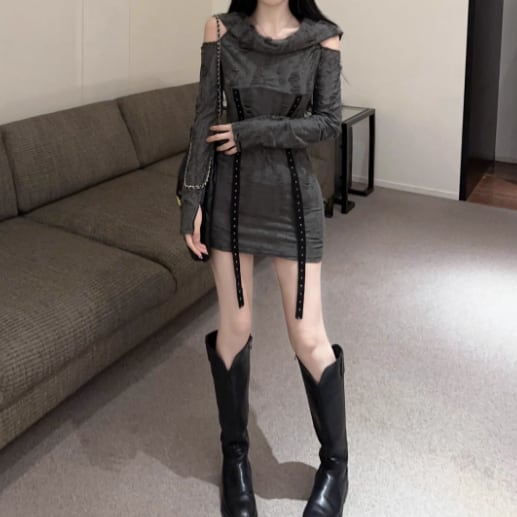 4色/シアースリーブストラップショルダーワンピ ・12626