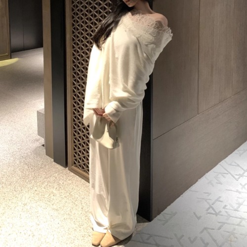 【3点セット】レースブラレット+オフショルトップス+レースヘムスカート ・12766