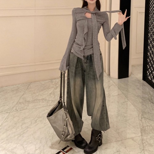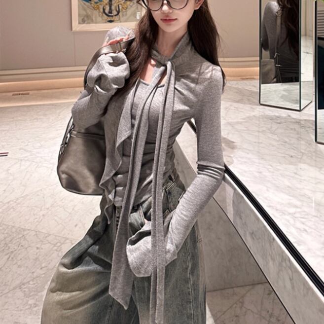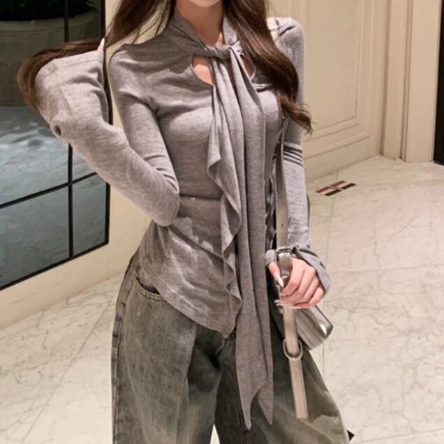 5色/オープンショルダードレープネックトップス ・12357