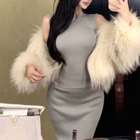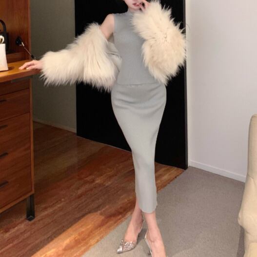【2点セット】3色/フーディーカシュクールトップス+マーメイドスカート ・12506
