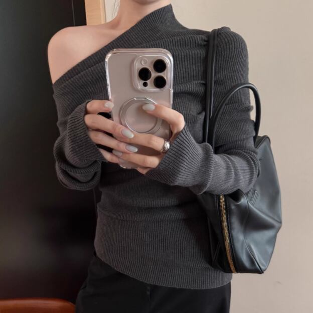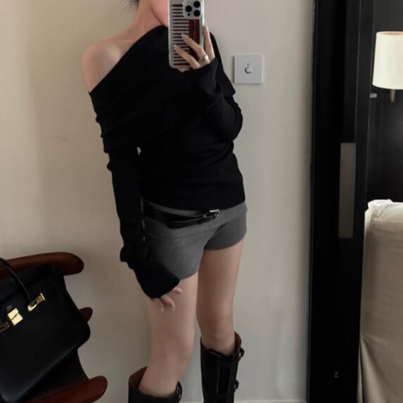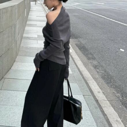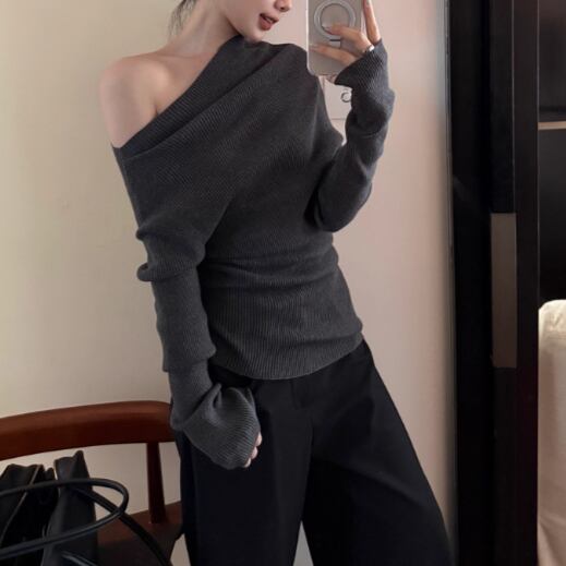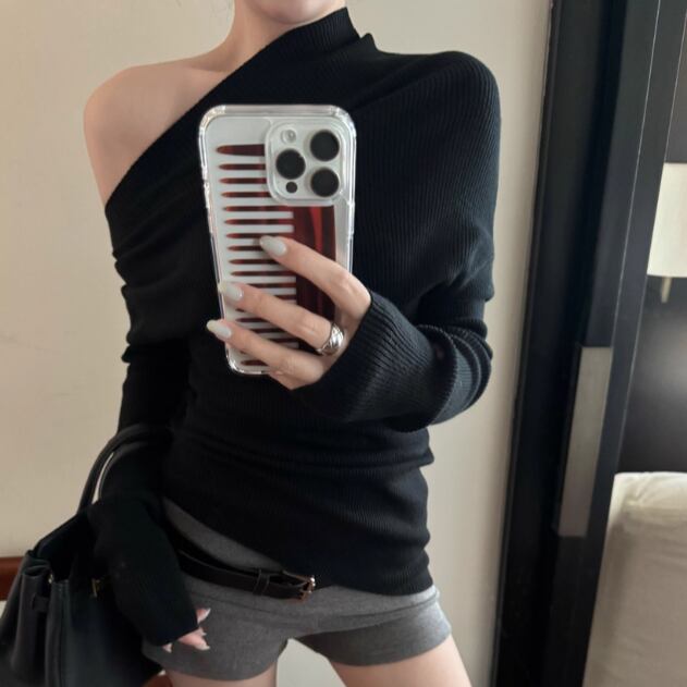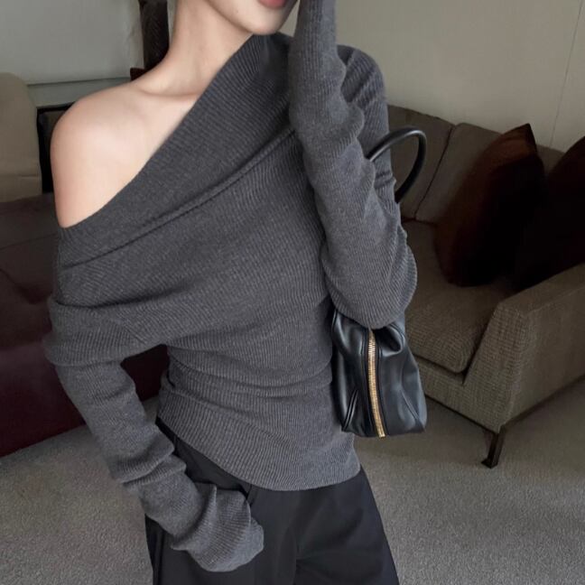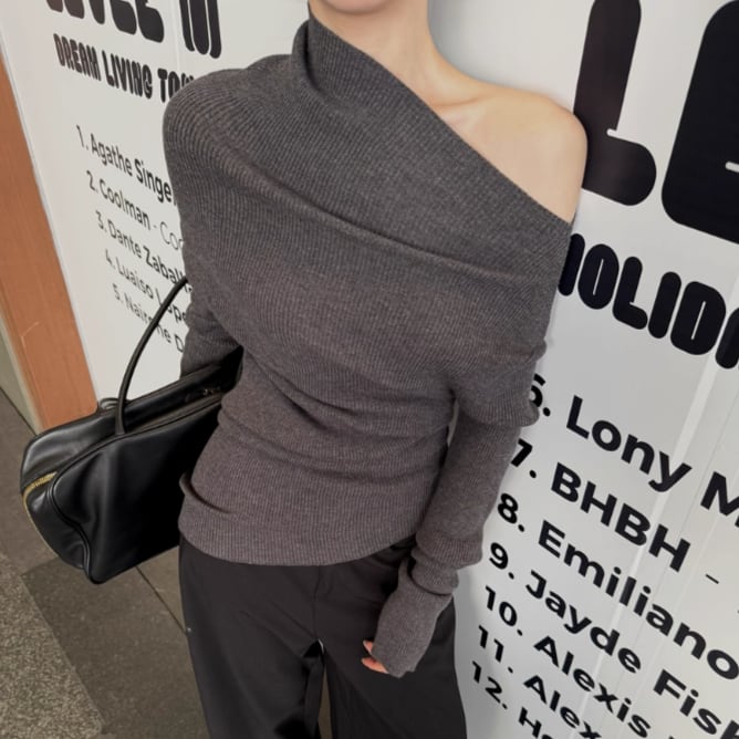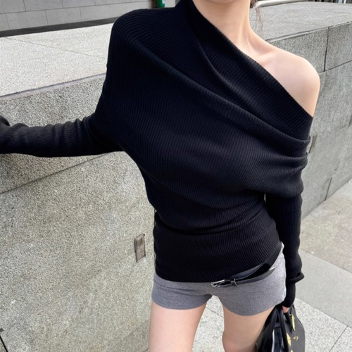 5色/オープンショルダードレープネックトップス ・12357