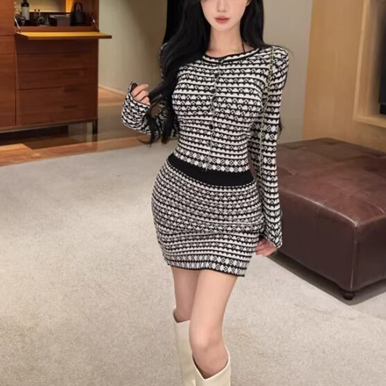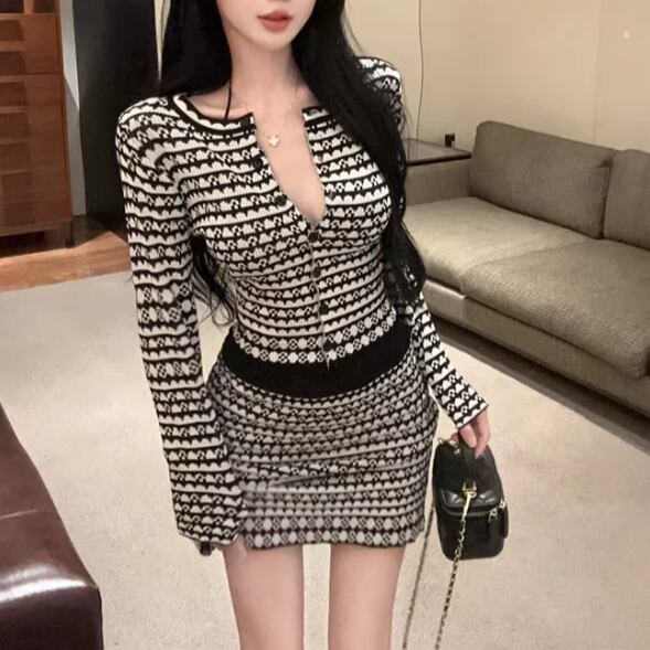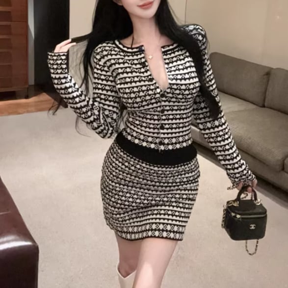 【2点セット】3色/フーディーカシュクールトップス+マーメイドスカート ・12506