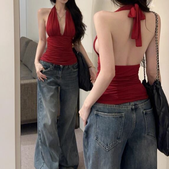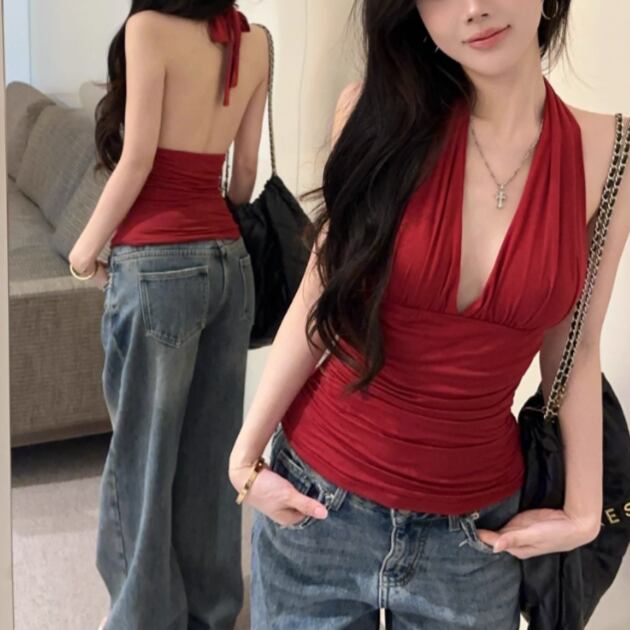 ファーデザインホルターネックトップス ・12698