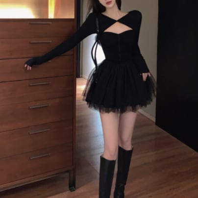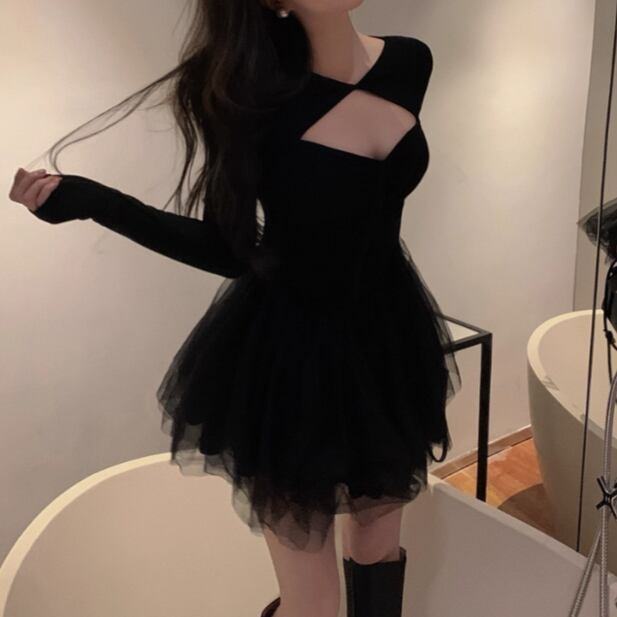 4色/シアースリーブストラップショルダーワンピ ・12626