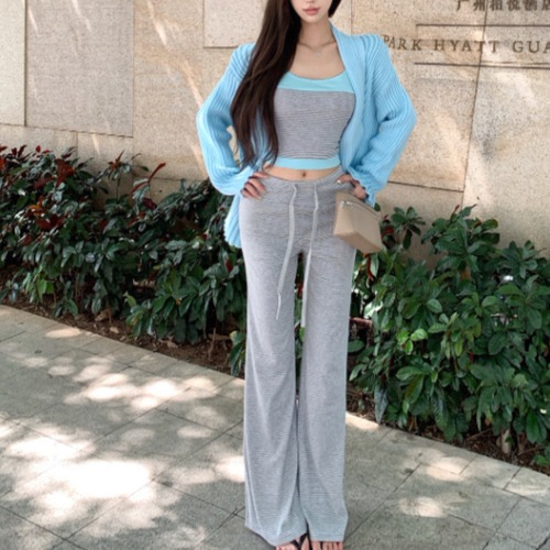 ▽Instagram「新作情報配信中」 フォローお願いいたします。 https://www.instagram.com/rote_roze.official/ ▼カラー ブルー(画像2枚目) ブラック(画像3枚目) ▼サイズ [ Sサイズ ] キャミ:着丈36cm バスト68cm パンツ:着丈98cm ウエスト68cm ヒップ84cm カーデ:着丈66cm バスト108cm 肩幅51.5cm 袖丈56.5cm [ Mサイズ ] キャミ:着丈36.5cm バスト72cm パンツ:着丈99cm ウエスト72cm ヒップ88cm カーデ:着丈67.5cm バスト112cm 肩幅53cm 袖丈57.5cm [ Lサイズ ] キャミ:着丈37cm バスト76cm パンツ:着丈100cm ウエスト76cm ヒップ92cm カーデ:着丈69cm バスト116cm 肩幅54.5cm 袖丈58.5cm ※1-3cm程度の誤差がある場合がございます。予めご了承ください。 ▼シーズン 春,秋 ▼同じカテゴリの商品はこちら https://www.roteroze.com/categories/4991976 ▽お支払い方法 ・クレジットカード決済 ・キャリア決済 (docomo/au/Softbank/Y!mobile) ・後払い決済 (商品お届け後コンビニ払いなど) ▽注意点 ※こちらの商品は決済から10日-3週間前後でのお届けとなります。 ※配送日時指定等に関しては、ご指定できないことご了承くださいませ。 ※できる限り早くお届けできるように手配させて頂きます。 ※検品はしておりますが、もし届いた商品に不備がありましたら、誠実に対応させていただきます。 商品ID:RR012427