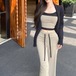 【2点セット】3色/フーディーカシュクールトップス+マーメイドスカート ・12506