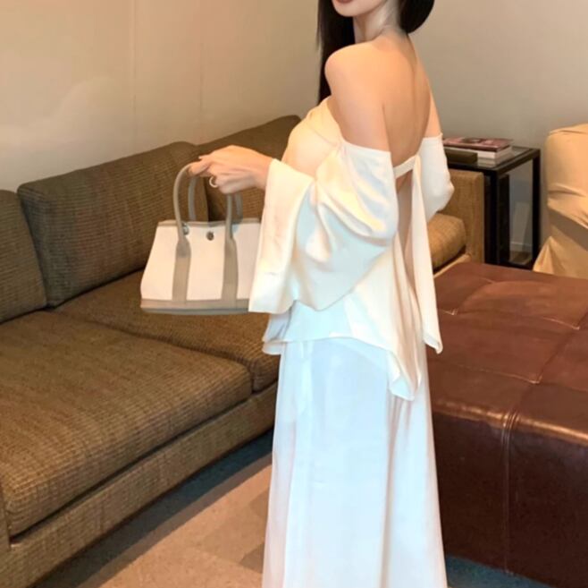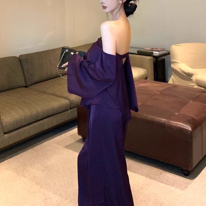【2点セット】3色/フーディーカシュクールトップス+マーメイドスカート ・12506