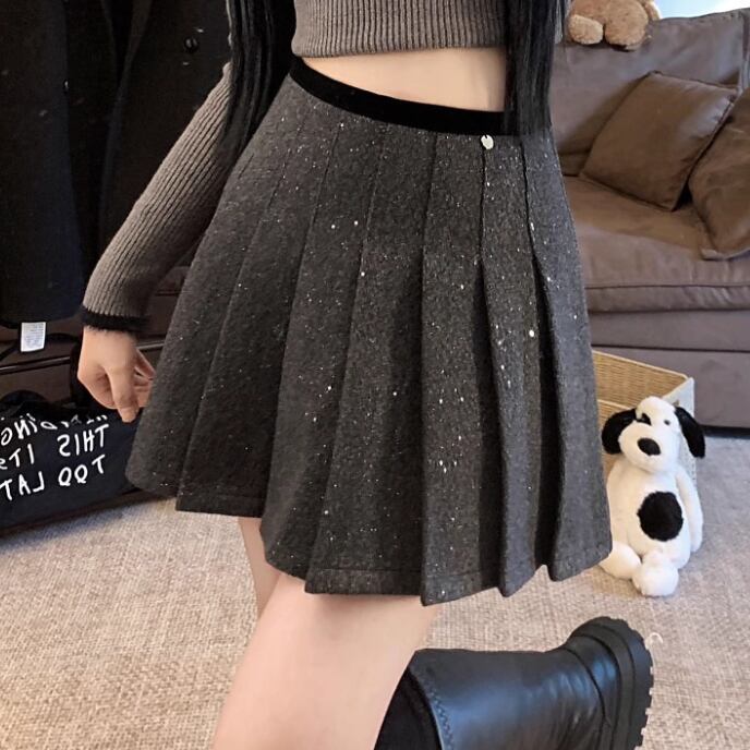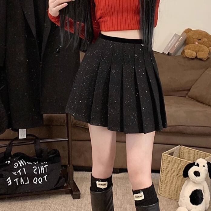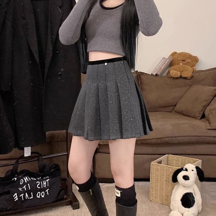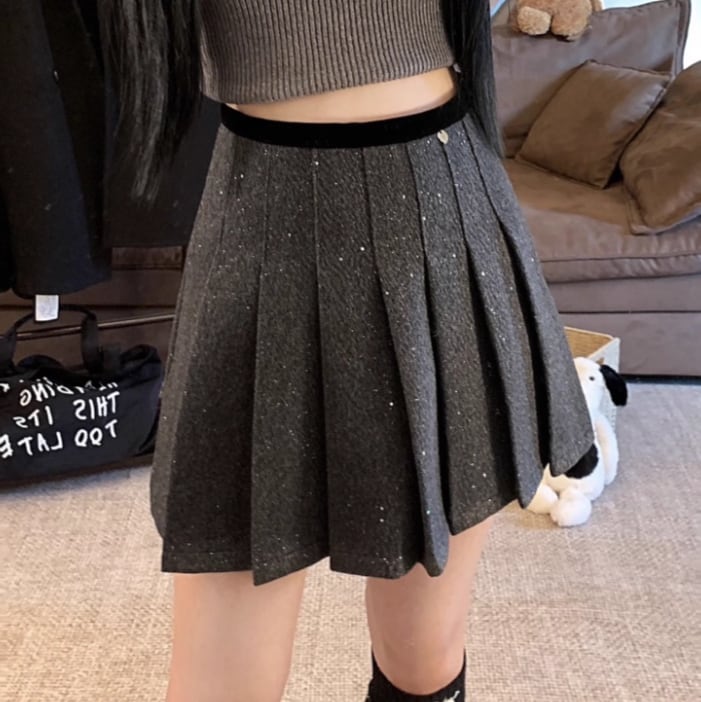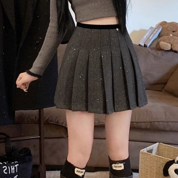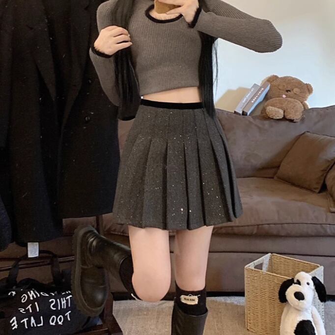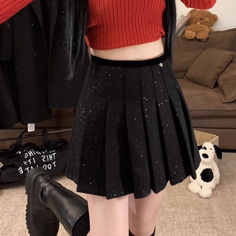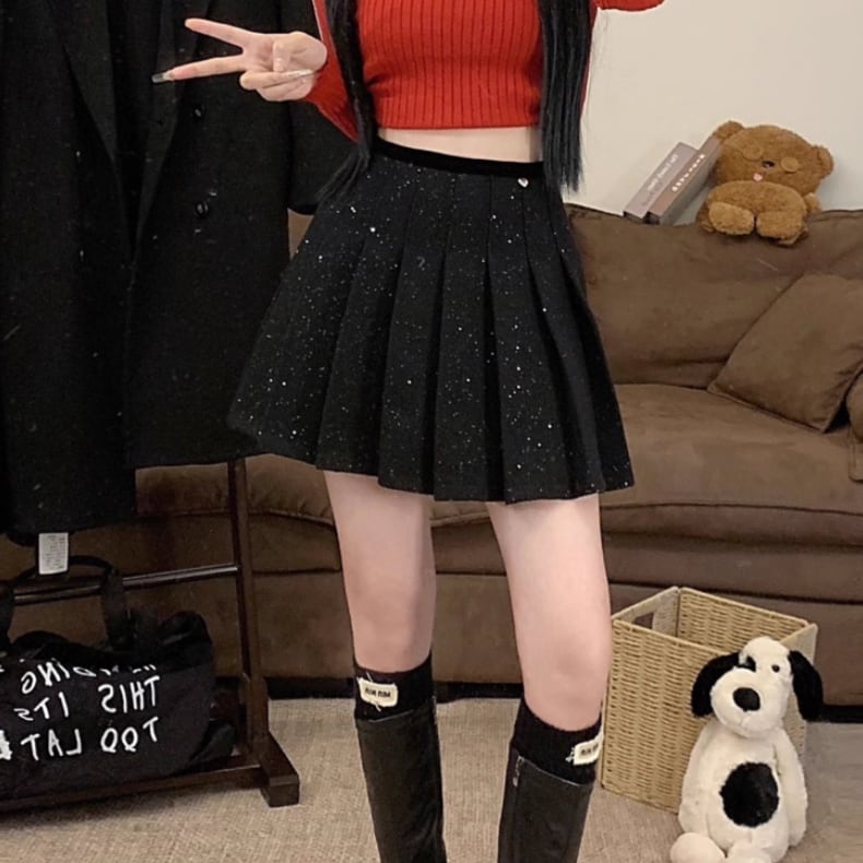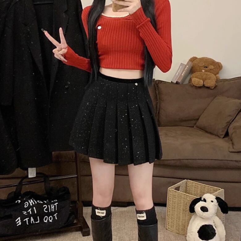 2色/スパンコールファーヘムスカート ・13176