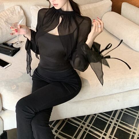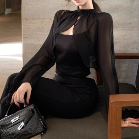 【2点セット】シアートップス+ストラップレストップス ・4288