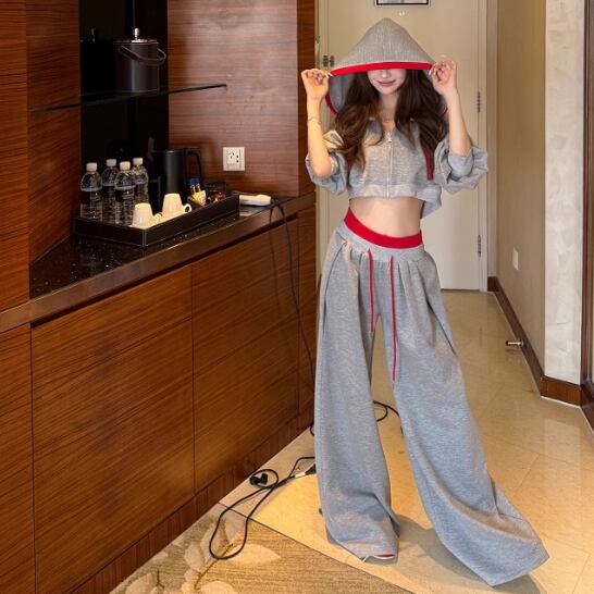【2点セット】3色/フーディーカシュクールトップス+マーメイドスカート ・12506