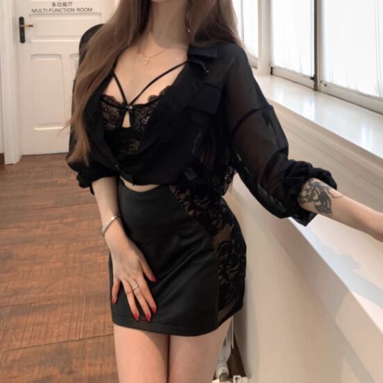 【3点セット】レースブラレット+オフショルトップス+レースヘムスカート ・12766
