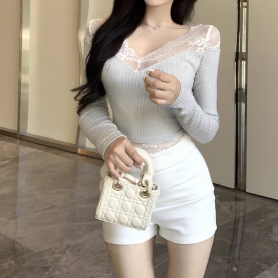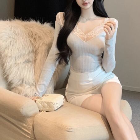 3色/ファーカラーレースアップコンビトップス ・12904